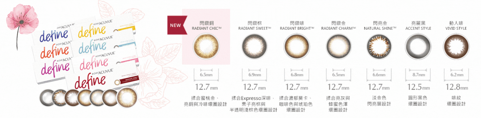 Collections include: 1-Day ACUVUE Moist, Oasys, Oasys 2 weeks and Define.