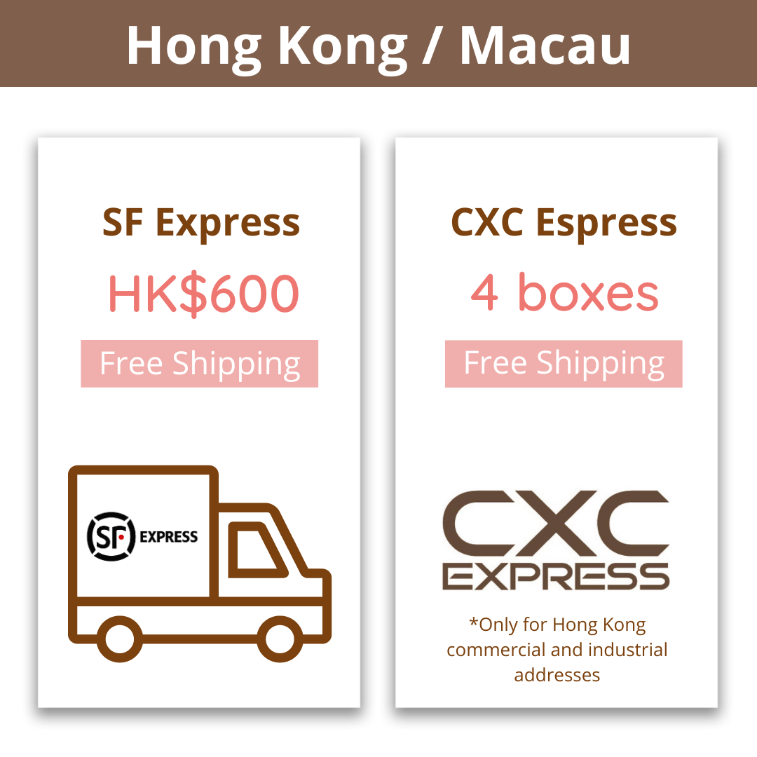 Free shipping with single order price HKD600 or more (after all discount). HKD30 if below 1 KG.