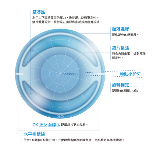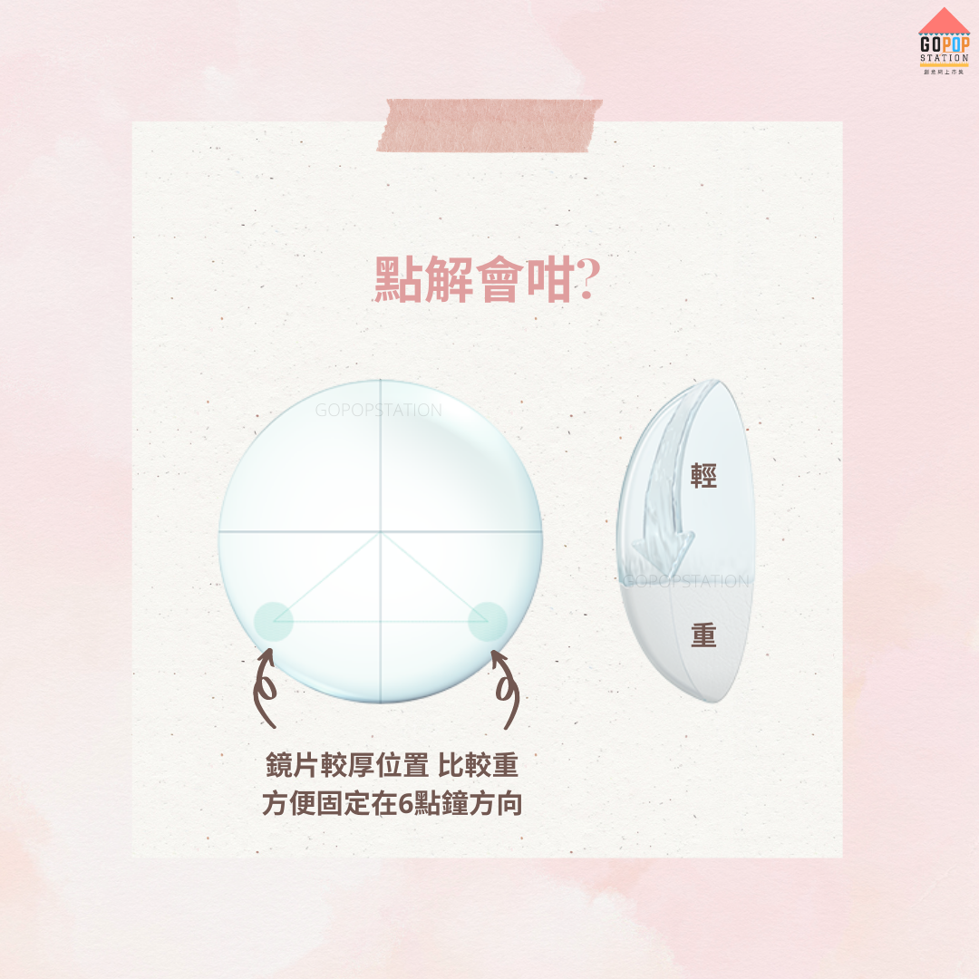 鏡片在眼球會因為眨眼等眼睛動作旋轉, 有機會造成線位偏移情況, 引致時清時模糊的情況出現