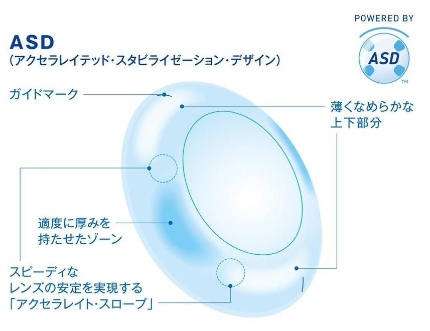 ASD隱形眼鏡定位技術, 目的是希望隱形眼鏡在配戴時更加穩定, 不容易移動, 發生"走位"情況