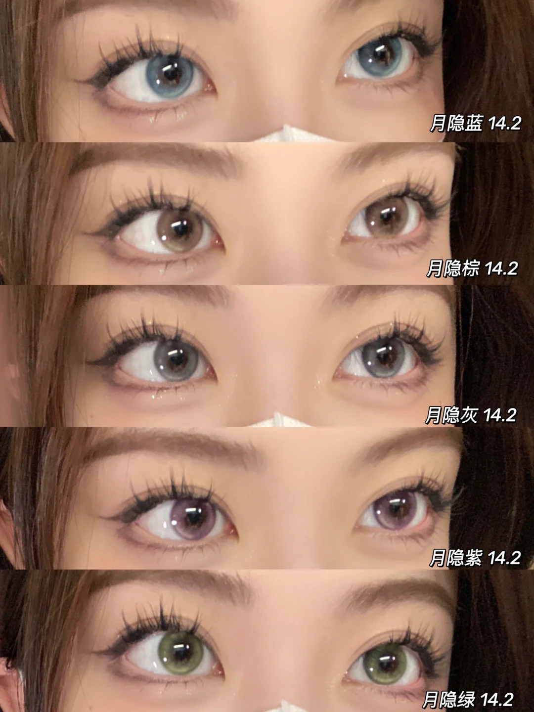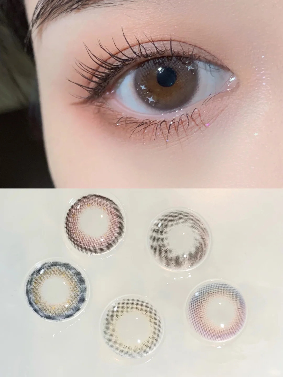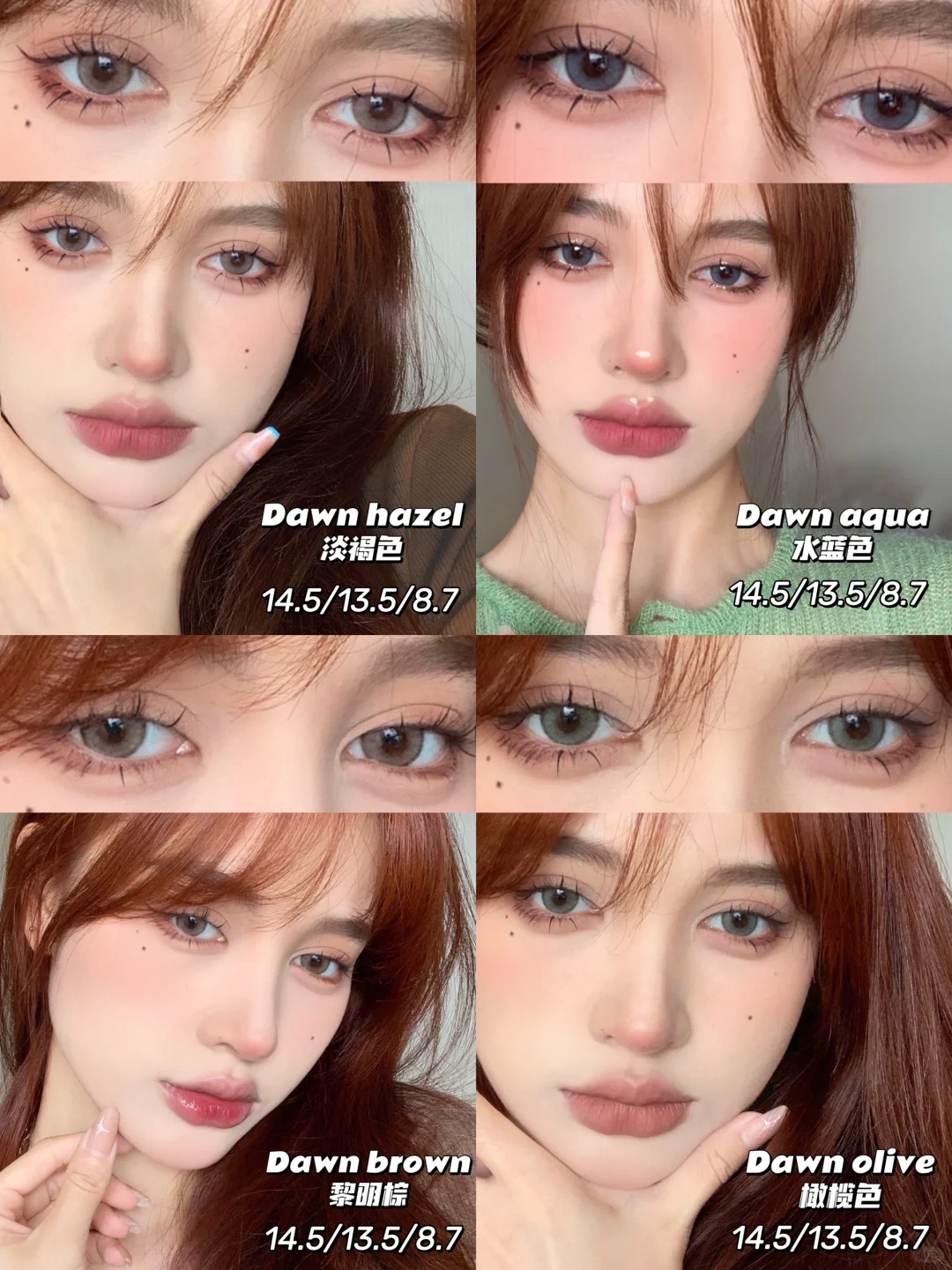輕混血褐色,顯色和融瞳度非常好,濃妝淡妝都適合的百搭款式。