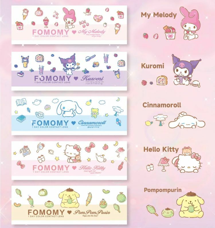 Fomomy X Sanrio 聯乘推出隱形眼鏡!最新系列 Fomomy ♥ Sanrio Character 1 Day 日拋Color Con系列,包括My Melody, Cinnamoroll 玉柱狗, Pompompurin布丁狗, Hello Kiity, Kuromi 5款!Sanrio都有美瞳!! 超級可愛! Sanrio迷快啲入手啦!