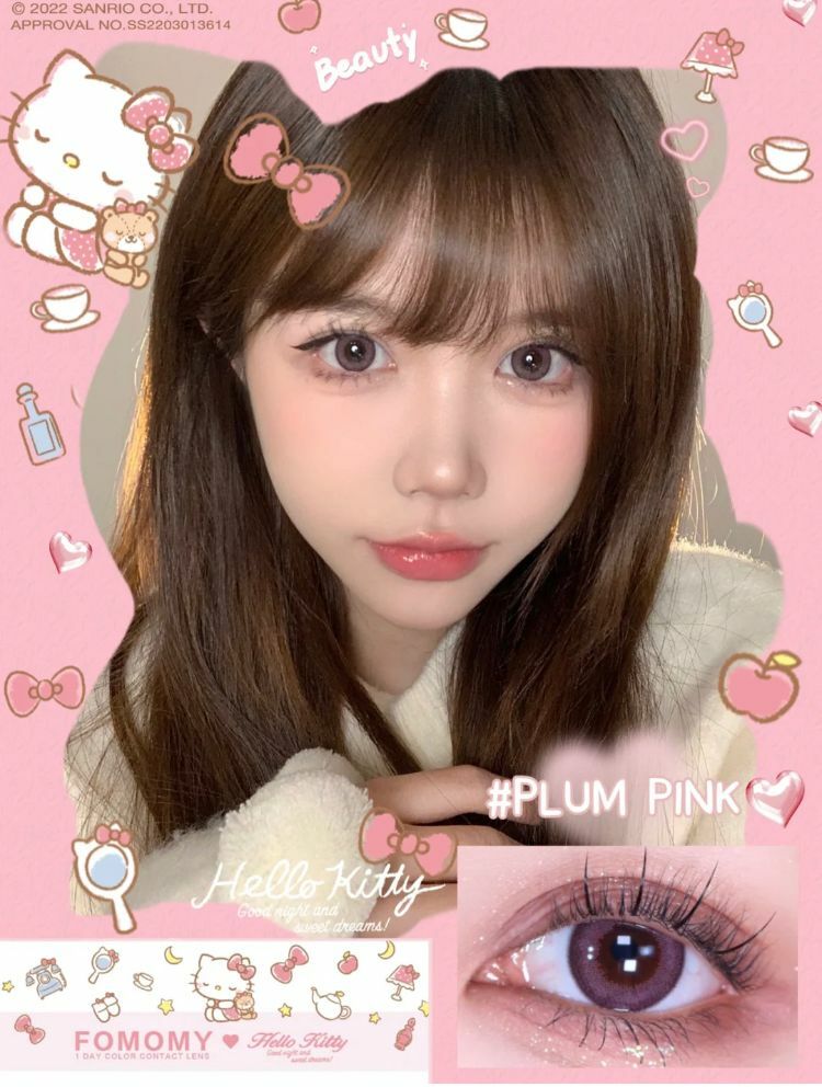 Fomomy X Sanrio 1 day 分別有直徑14.1mm及14.5mm的款式,直徑14.1mm款式著色直徑13.3mm、14.5mm直徑款式則為13.5mm,弧度8.6mm,含水量58%,每盒10片裝。