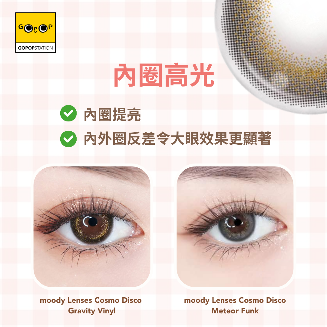 解決了以往只有半圈的高光美瞳引致"鬥雞眼"(轉對眼)的問題, 因為無論鏡片旋轉到左右都會有高光效果, 不過要是雙眼不對稱也會有點怪怪的