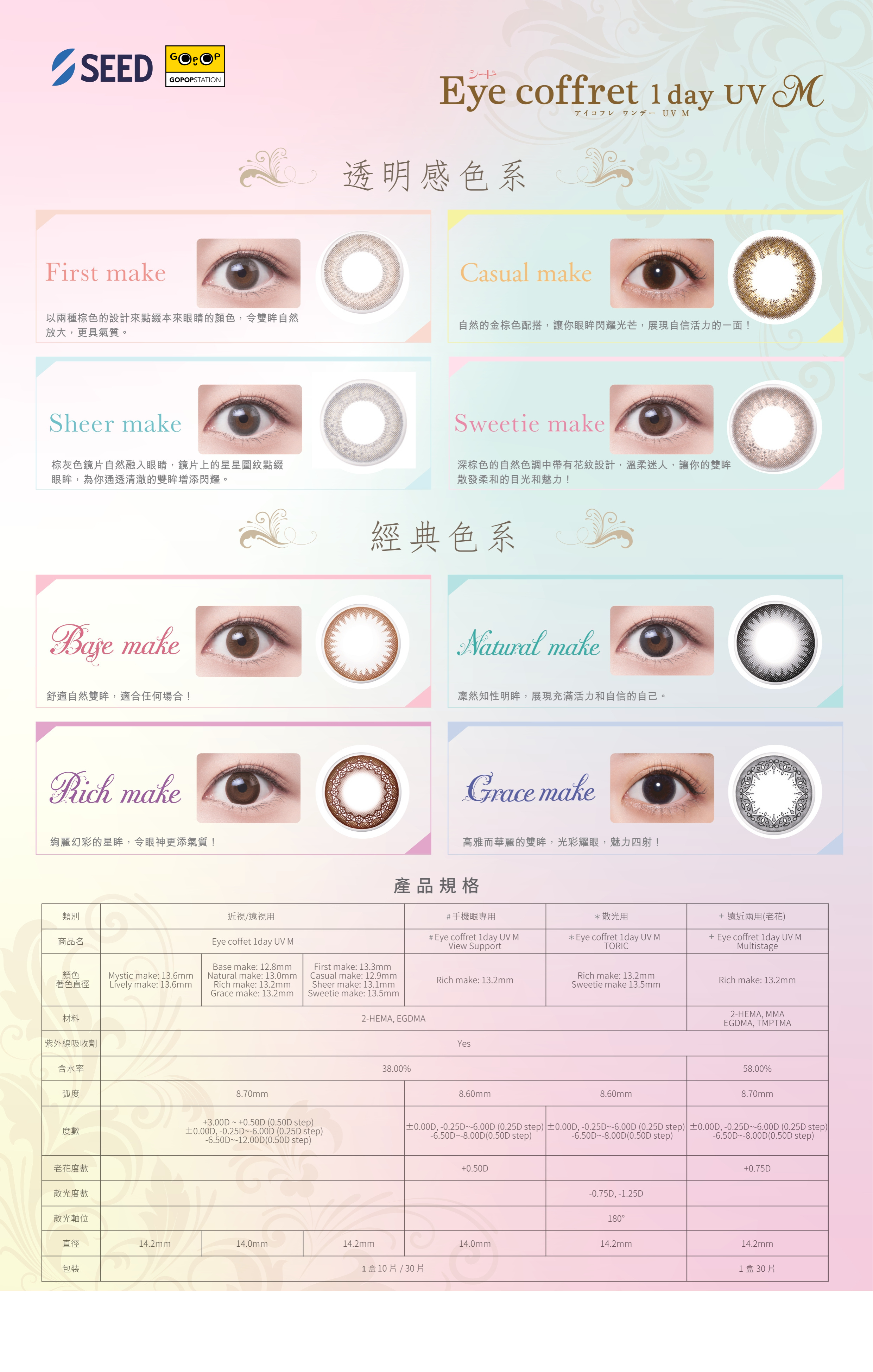 *2024更新增了適合初老花使用的SEED Eye Coffret 1 Day UV M View Support Rich Make 老花漸進彩色隱形眼鏡, 點我看介紹報告