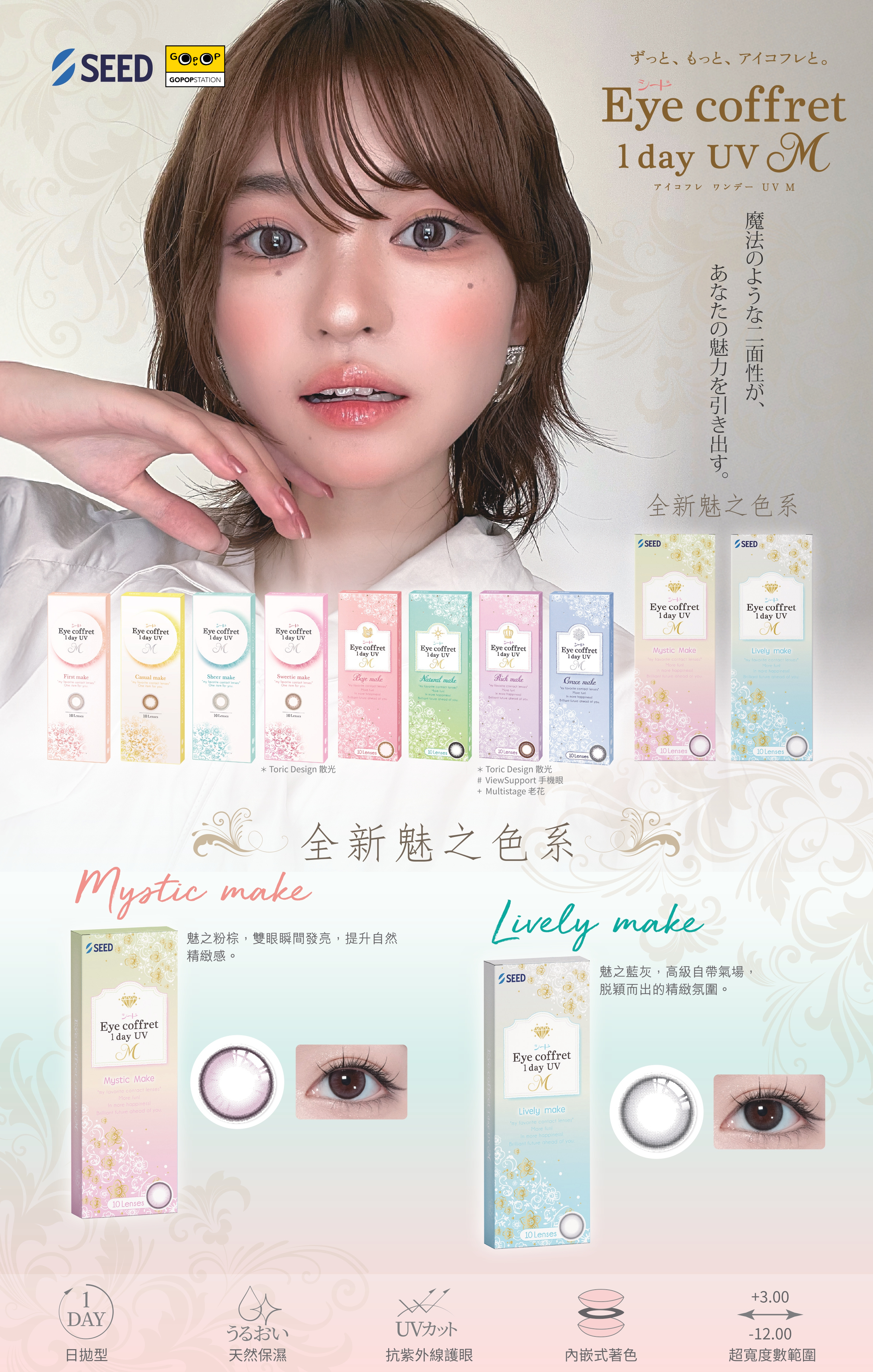 *2024更新增了適合老花使用的SEED Eye Coffret 1 Day UV M Multistage Rich Make 老花漸進彩色隱形眼鏡, 點我看介紹報告